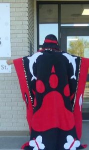 Jessica drew on her First Nations heritage for her design. Her design started with the idea of the fishing hat, she says. Her birth family is from Shxwha:y Village, a First Nations community located near Chilliwack, B.C., in Stó:lō and Ts’elxwéyeqw traditional territory, where fishing has always been integral and important part of the community’s culture, economy and wellbeing.